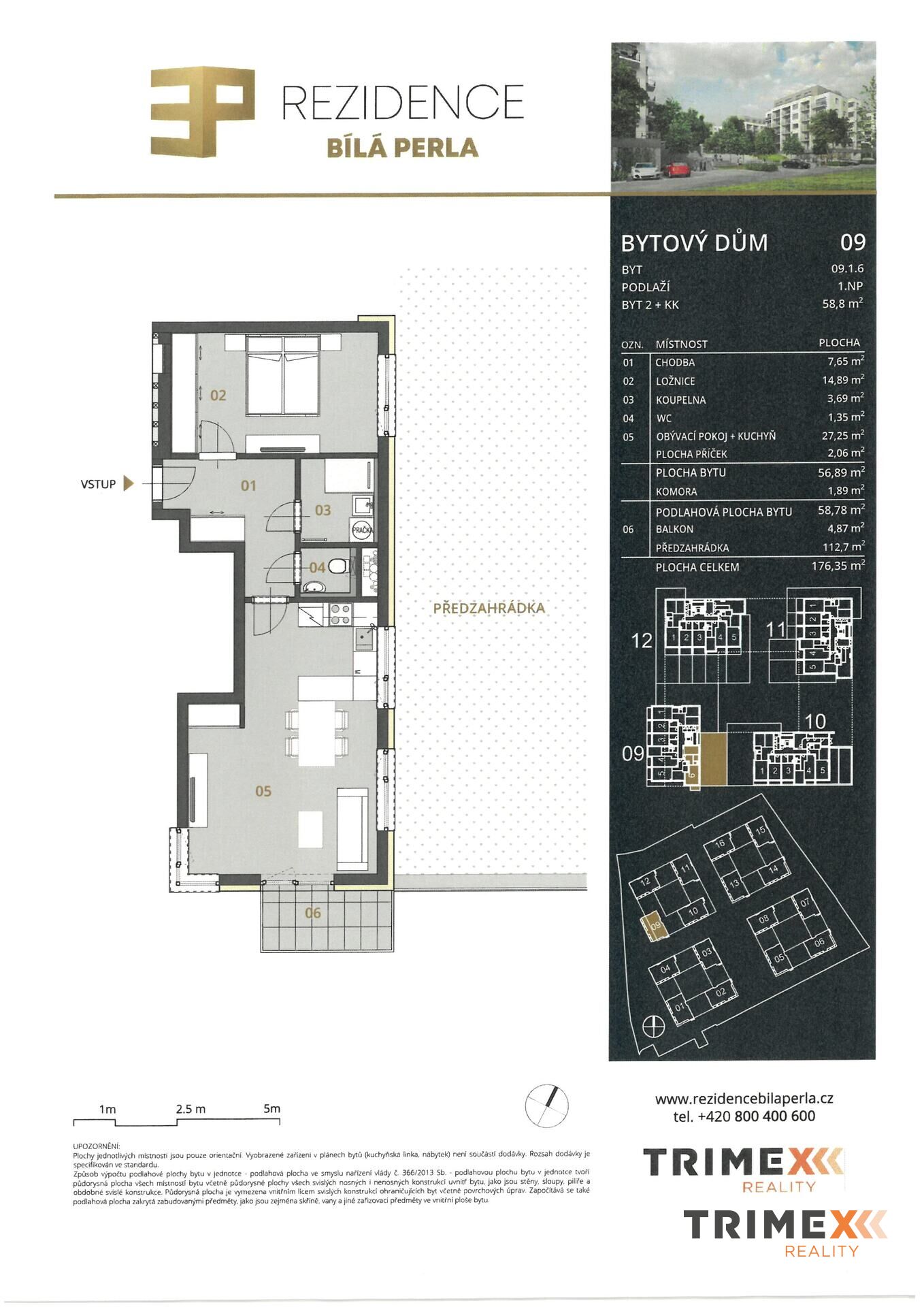 Nabízíme koupi bytové jednotky 2+kk se zahrádkou v novostavbě bytového projektu Rezidence Bílá perla ve Vančurově ulici v Opavě. Byt se nachází v přízemí. Velkým benefitem bytu je vlastní oplocená zahrádka o výměře 112 m². Vstup do zahrady je z obývacího pokoje a ložnice. Byt je vybavený kuchyňskou linkou, dále disponuje komorou, samostatným WC a koupelnou s se sprchovým koutem. V ceně bytu je jedno stání v garážové hale a sklep za garážovým stáním.