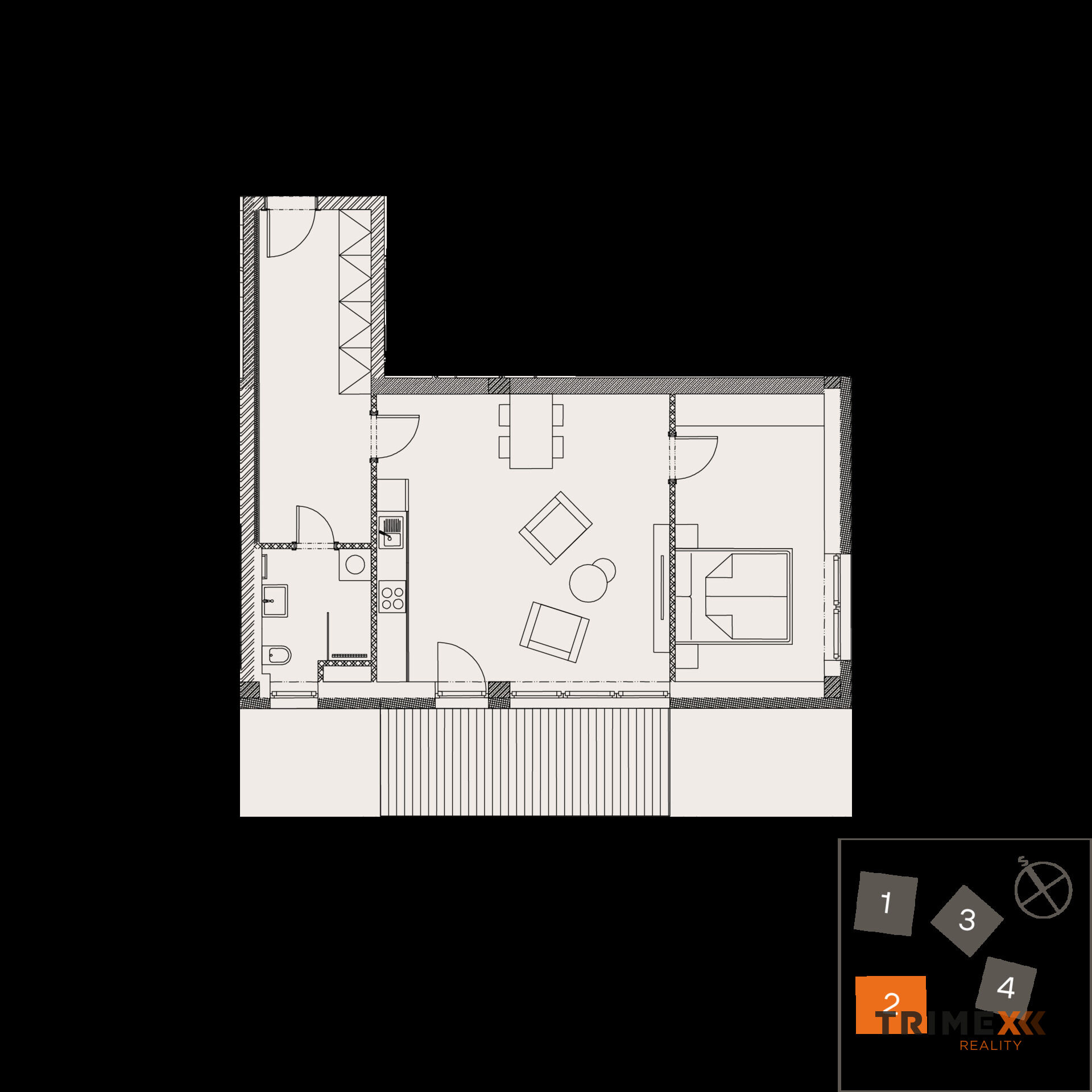 Rezidenci Štěpánov, Valašské Meziříčí, byt. jedn. 2+kk, 61,83 m², terasa 10,96 m², zahrada 221,6 m²