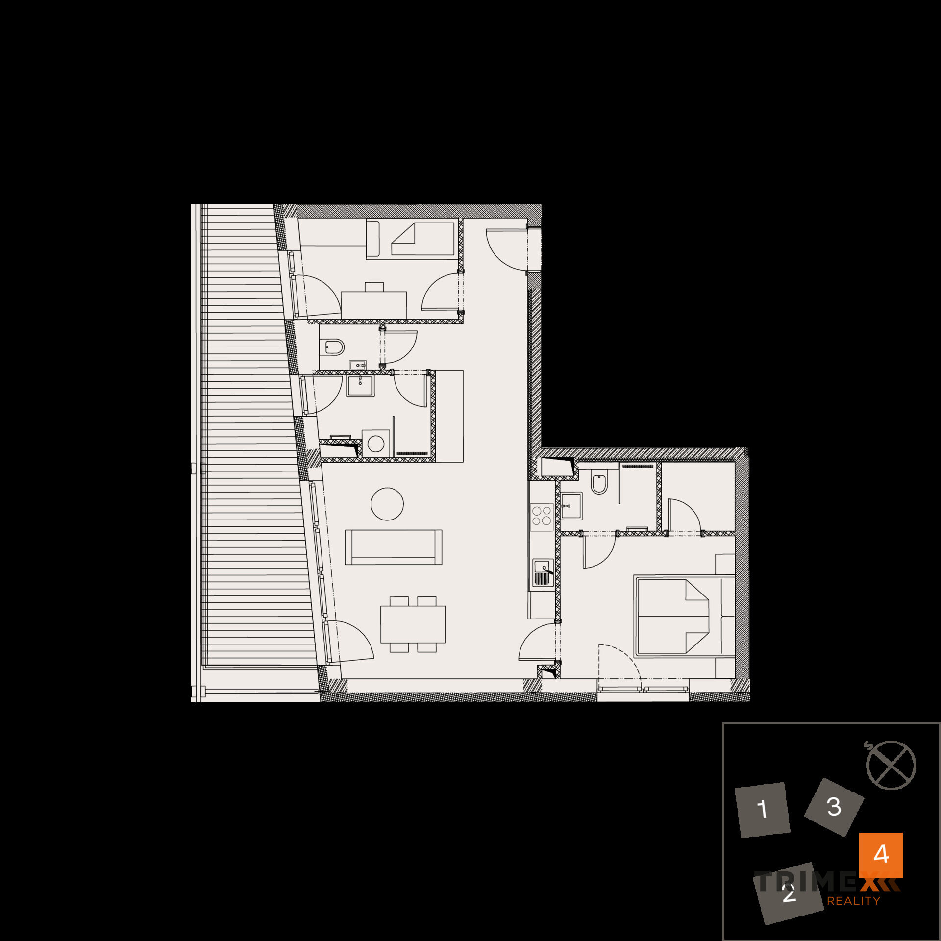 Rezidenci Štěpánov, Valašské Meziříčí, bytová jednotka 3+kk, 63,07 m², balkon 20,45 m²
